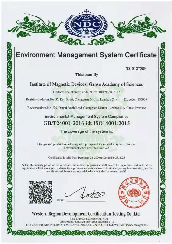 環(huán)境管理體系認(rèn)證證書
